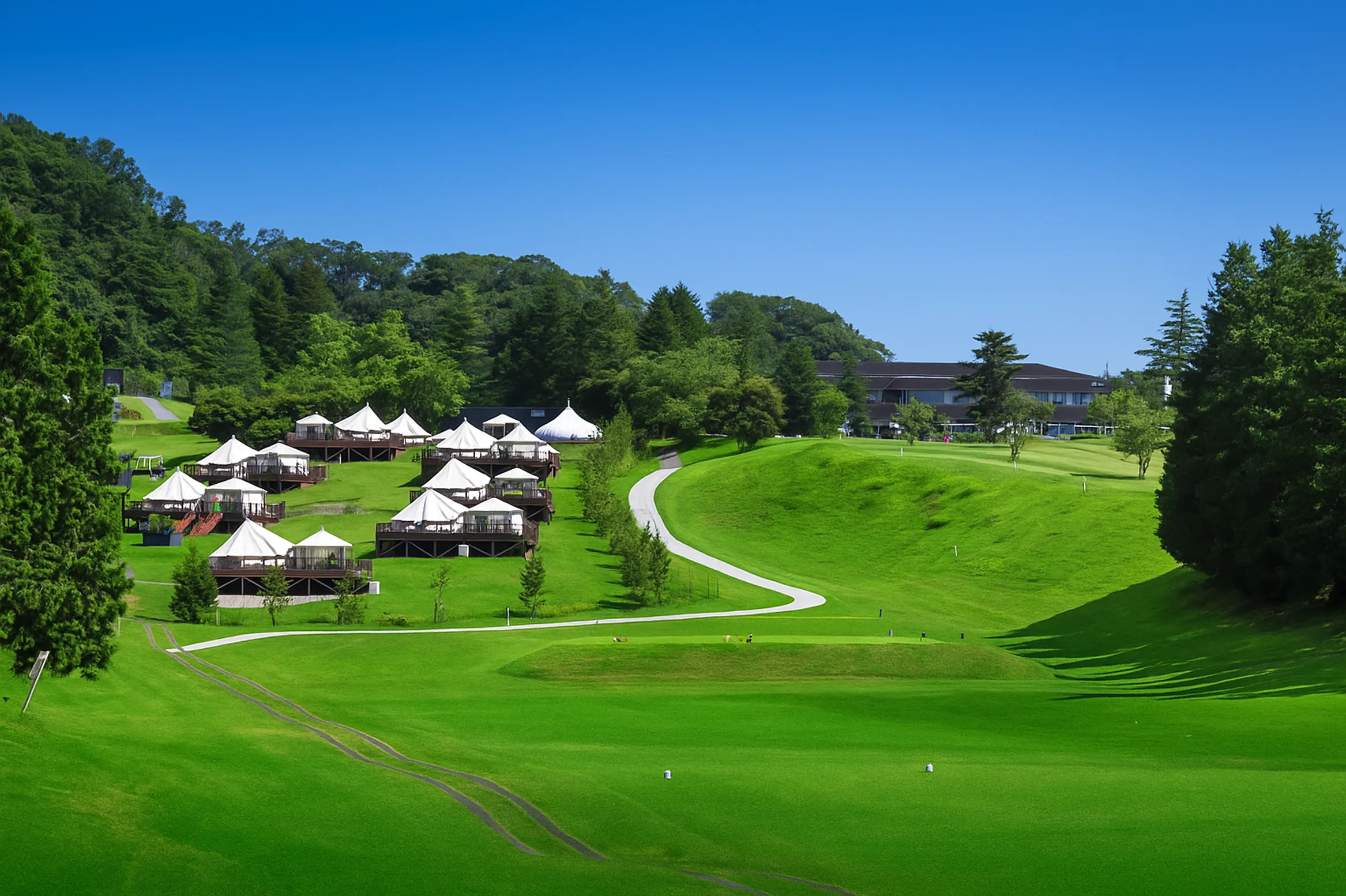 自然の地形を活かした東コース。自然に溶け込んだこのコースは、プレイヤーに高い戦略性を要求し、ゴルフの手ごたえを実感させる。圧巻のドローン映像で魅せる、名物2番ホール。臨場感あふれるガイドをぜひご体感ください。Out東コースの方は、Inは西コースです。