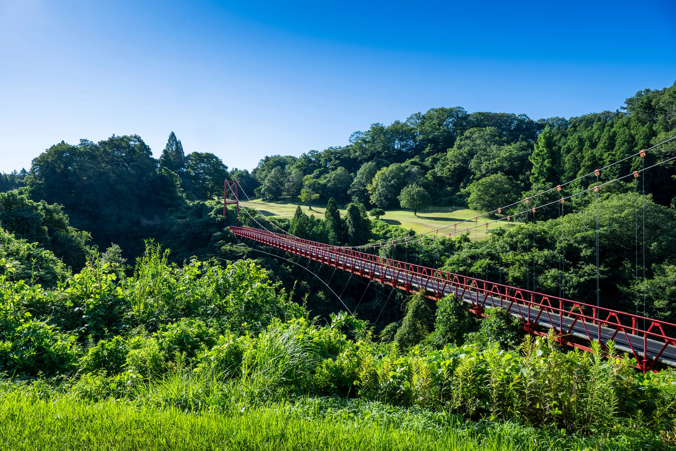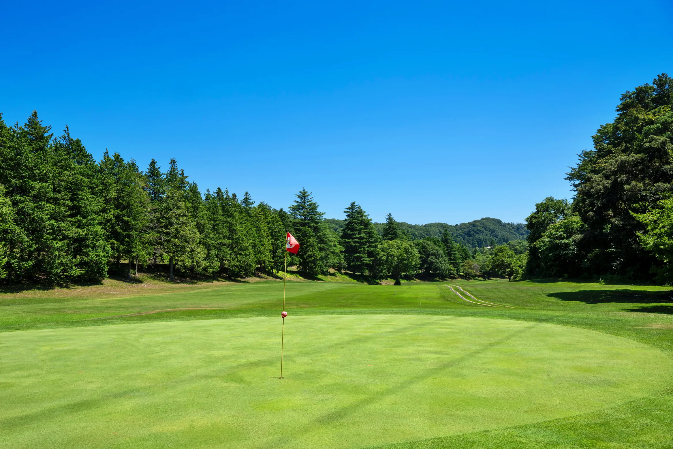 西コースは、起伏ある自然地形を活かしたメンテナンスとレイアウトが特徴。緩やかなフェアウェイが万遍なく広がり、初心者から上級者まで楽しめる設計。丘陵の雄大なスカイラインの眺望も魅力です。圧巻のドローン映像で魅せる、名物6番ホール。臨場感あふれるガイドをぜひご体感ください。Out西コースの方は、Inは中コースです。